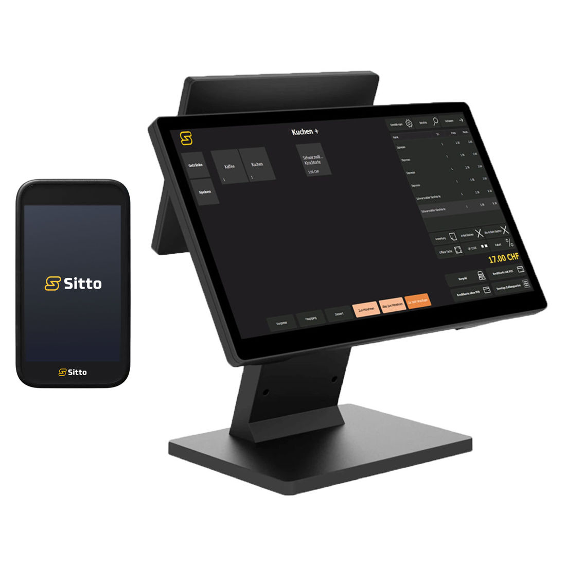 Ein All-in-One System mit Kassenhardwar, Kassensoftware, Bondrucker, und AMS1 Mobiles Bezahlterminal.